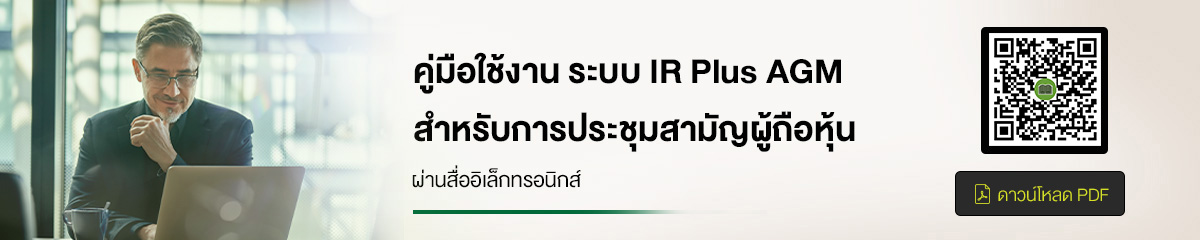 | แนวปฏิบัติสำหรับการเข้าร่วมประชุมสามัญผู้ถือหุ้นประจำปี 2563 ของบริษัทภายใต้สถานการณ์การระบาดของไวรัสโคโรนา 2019 (COVID-19) | ดาวน์โหลด |
